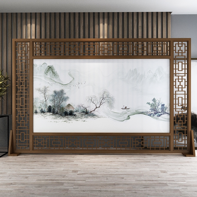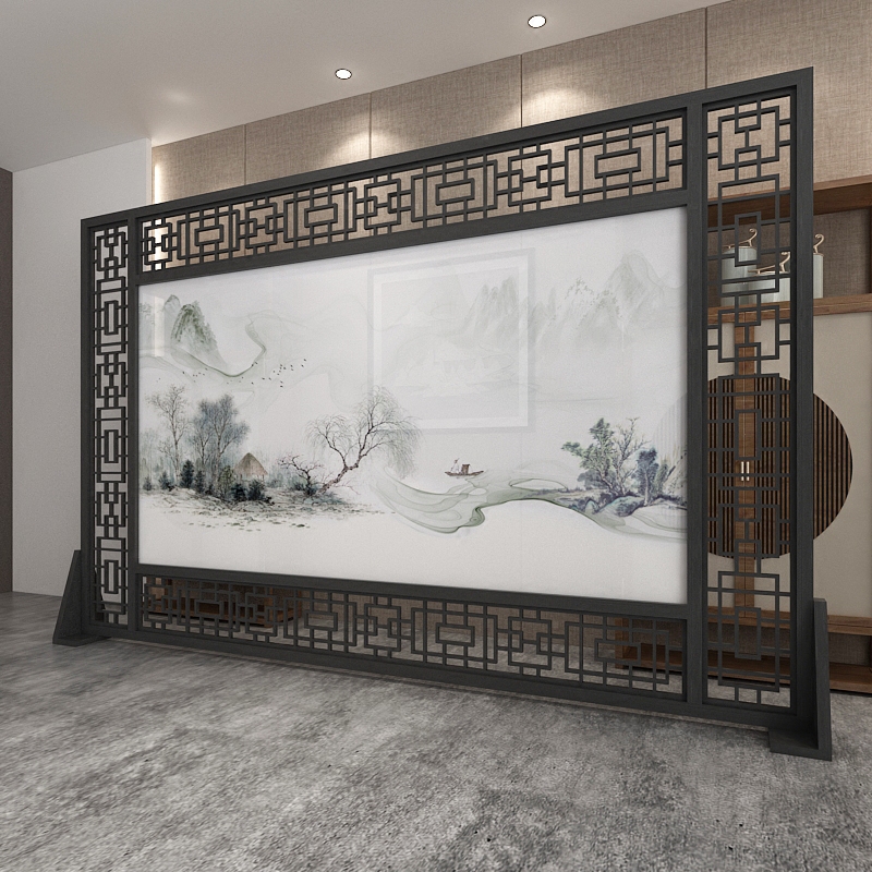 Chinese screen partition living room office customized solid wood Xuan inkinkinkwater mobility semi-permeable screen decoration