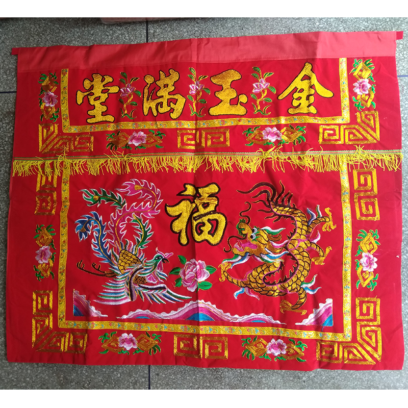 Gold and jade table surround embroidery home wedding Su embroidery worship Tiangong tablecloth Buddha table surround dragon and phoenix red table surround cloth
