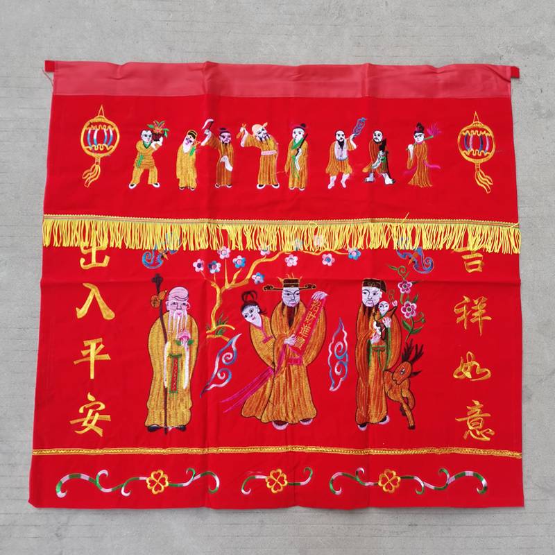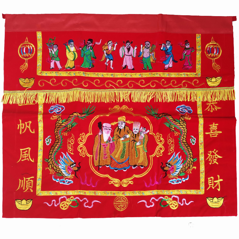 3 feet (1M) finely embroidered three-star and eight immortal heads 2
