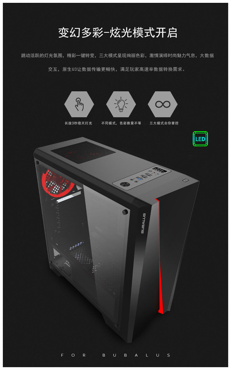 Big Buffalo BUBALUS Pan Shen Plus computer case sucking lamp U3 two-piece water-cooled acrylic side penetration promotion