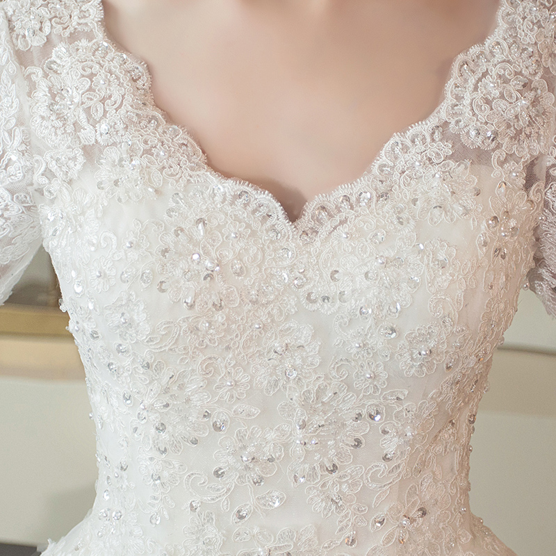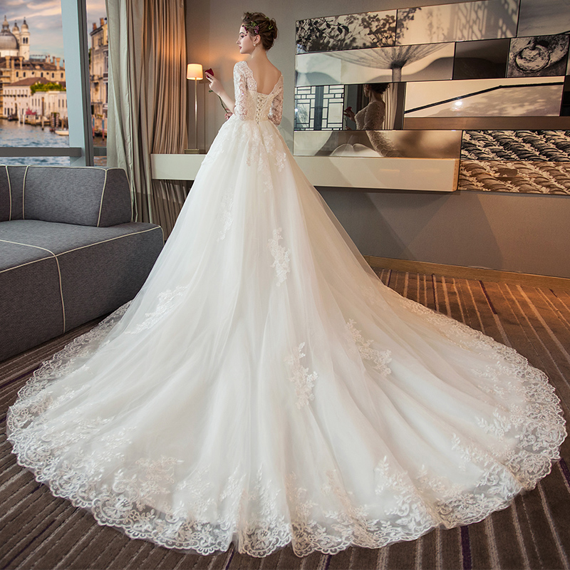 Long tail luxury main wedding dress 2021 new bridal temperament simple thin pregnant women small children long-sleeved spring and autumn