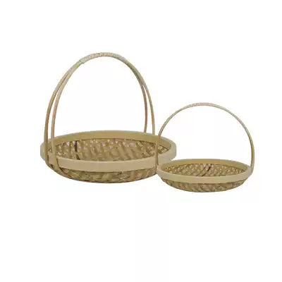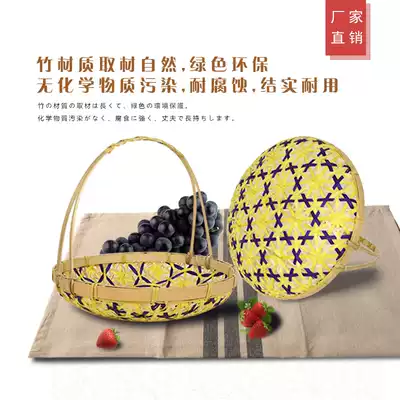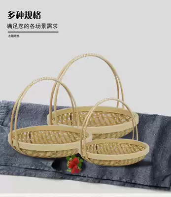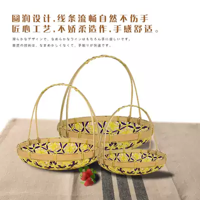 Handmade bamboo basket round Net fundus handle fruit blue snack basket fried food basket bamboo craft basket