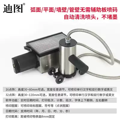 Ditu DT-2460 Large character laser handheld intelligent inkjet printer Food pipe fittings metal printing production date Laser virtual body word automatic white ink coding inkjet printer can play 6cm