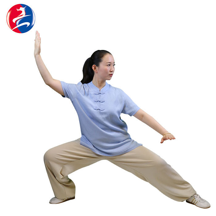 Best selling Hua Wu Tang summer bamboo cotton linen short sleeve tai chi t-shirt women's loose professional customization