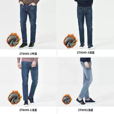 Hanska (clearance sale single piece 79 yuan two pieces 99 yuan) autumn and winter plus velvet straight jeans men