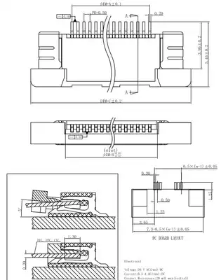 FPC CONNECTOR 0 5MM UPPER AND LOWER CLAMSHELL 4 6 8 10 20 24 30 40 50 54P CABLE SEAT