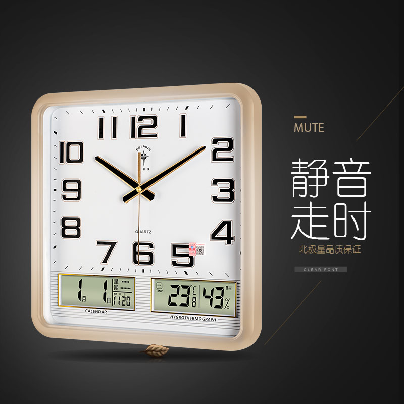 Polaris living room large wall clock Modern creative luminous perpetual calendar watch square simple hanging watch calendar quartz clock