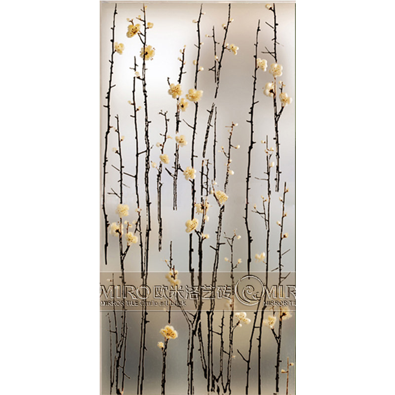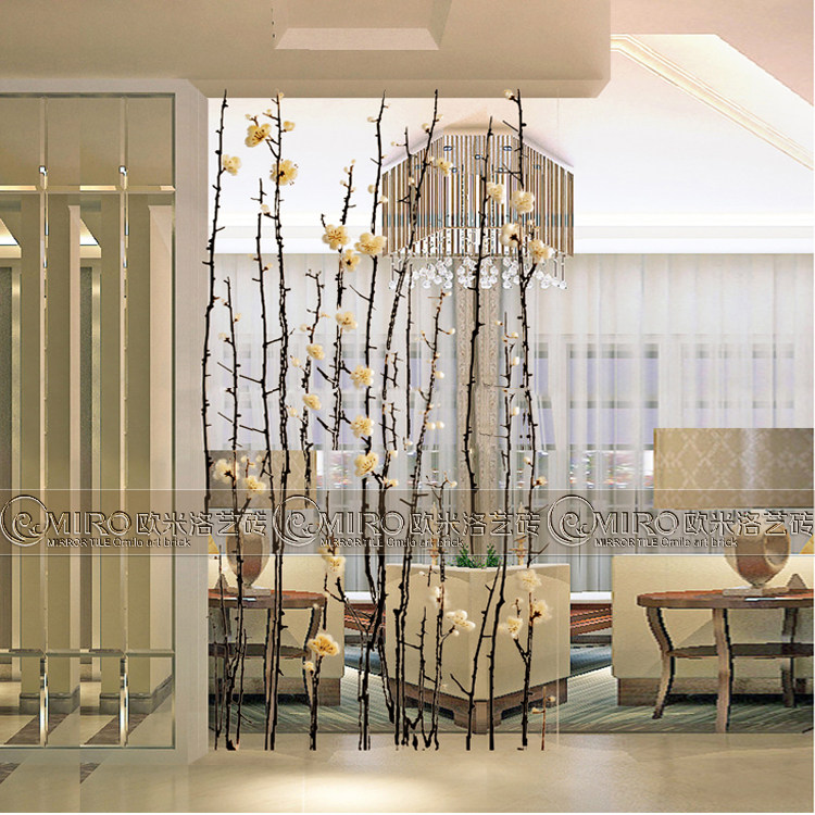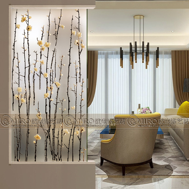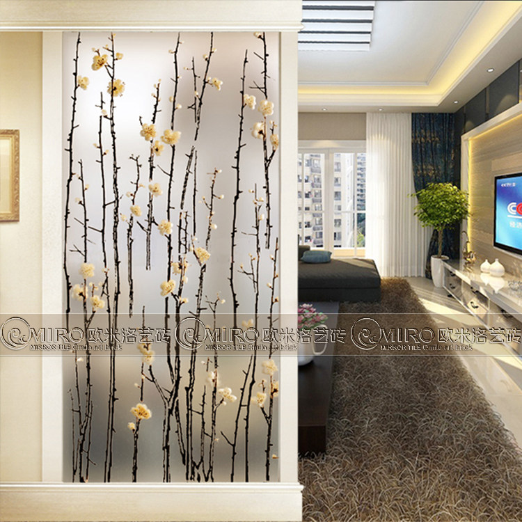New art glass Living room screen Entrance entrance Powder room partition sliding door Tempered carved decorative plum blossom