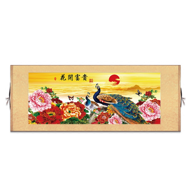 Peony painting flower opening rich and expensive horizontal version Xuanguan Living room decoration painting Silk Scroll Hanging Painting Country Painting Fu Murals