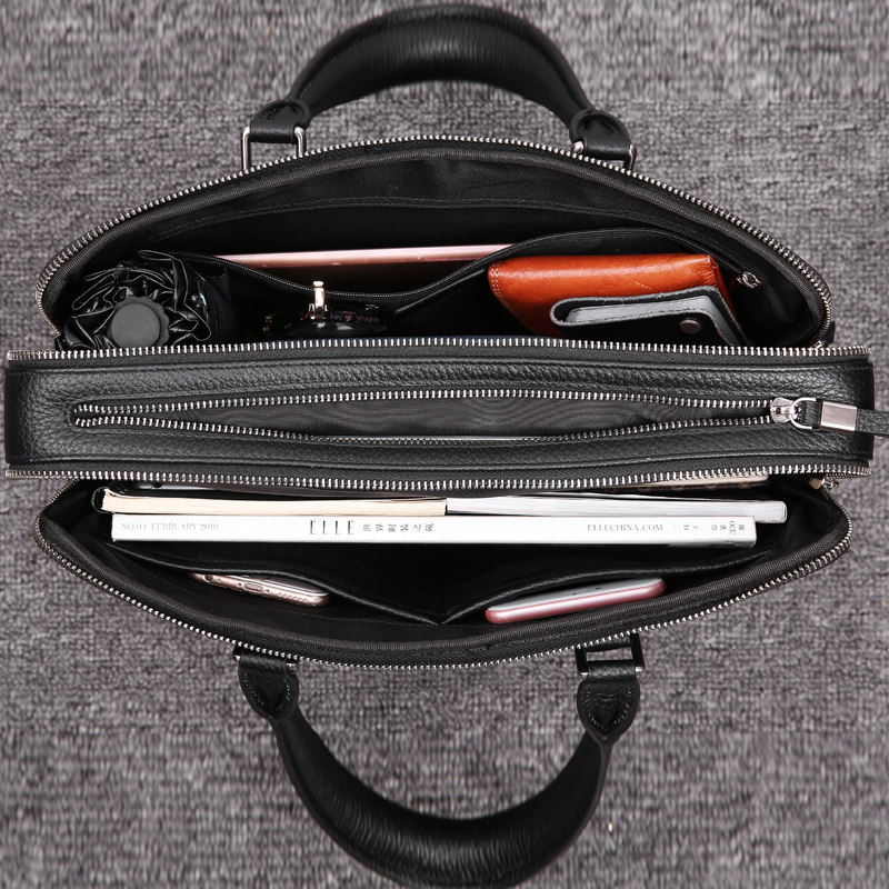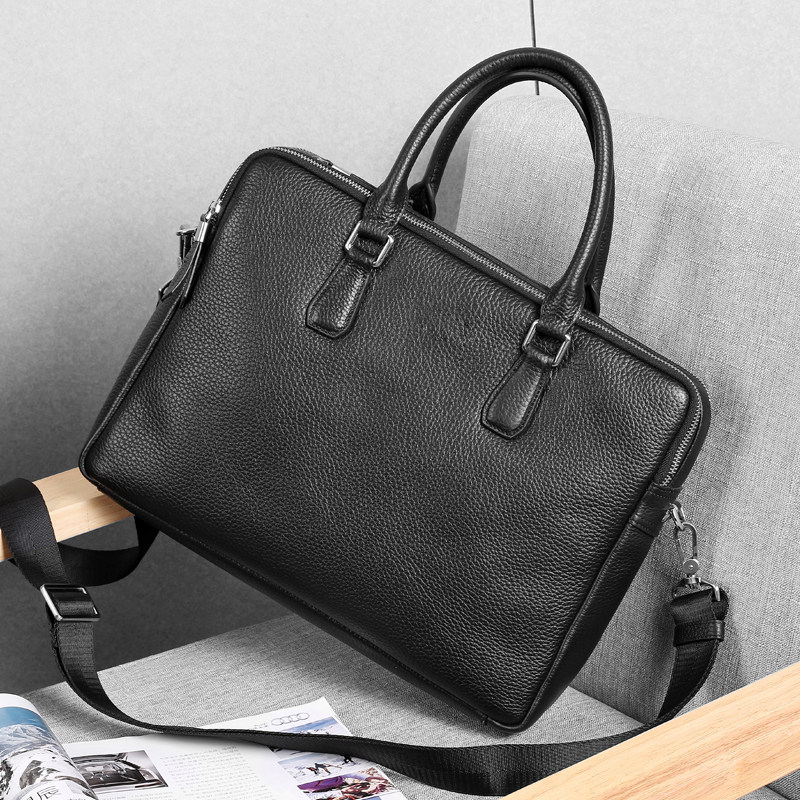 Men's Bag Briefcase Handbag Leather First Layer Cowhide Soft Leather Simple Business Hand Carry Men's Multilayer Shoulder Bag