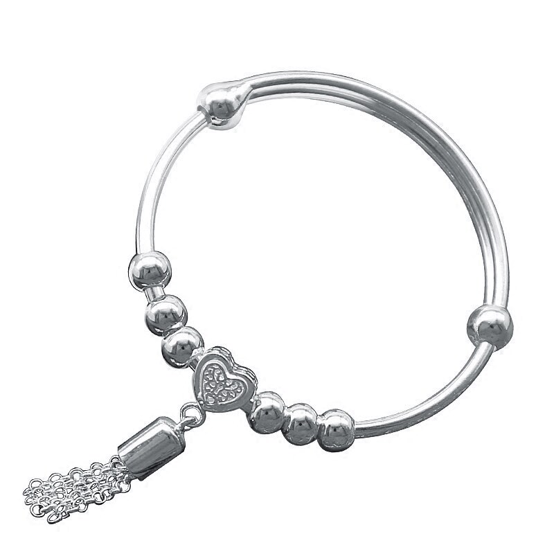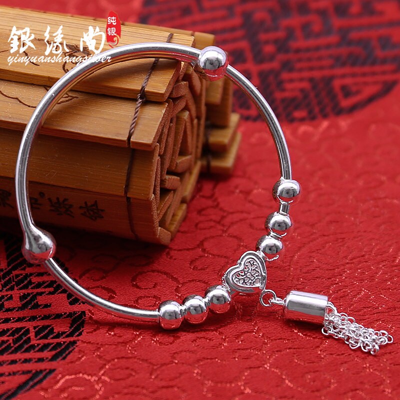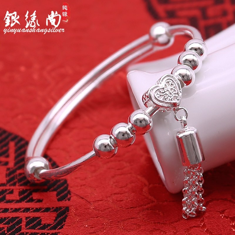 s990 silver bracelet female push-pull tassel transfer bead bracelet smooth solid fashion bracelet to send girlfriend gifts