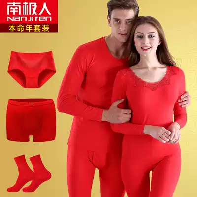 Antarctic man's year of life underwear set female modal pure cotton men's warm autumn clothes sanitary pants red wedding year of the rat