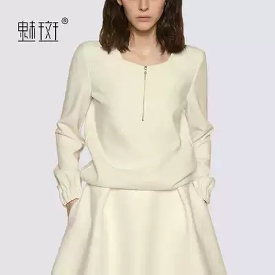 Charm spot casual suit women's 2021 spring new small square collar long-sleeved loose half-length A-line skirt fashion two-piece tide