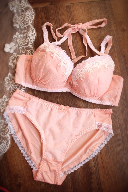 Hanging neck large size cute memory soft steel ring Mengba fat M girl underwear suit comfortable without deformation BRA