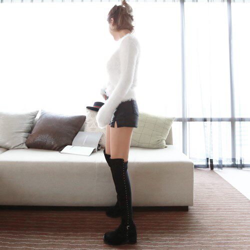 Korea handmade custom side rivet belt buckle square coarse heel frosted cow leather over knee long boot