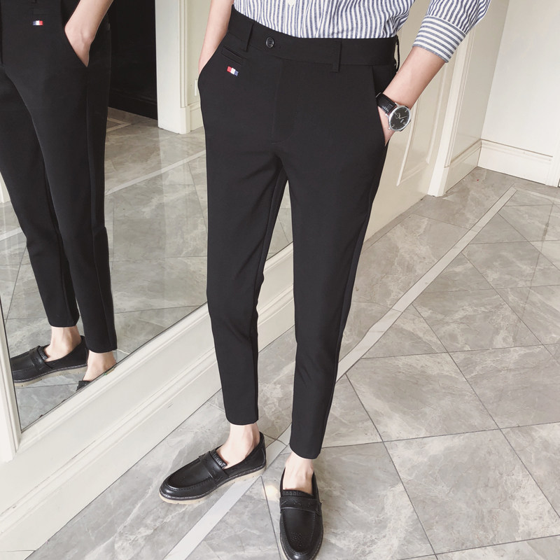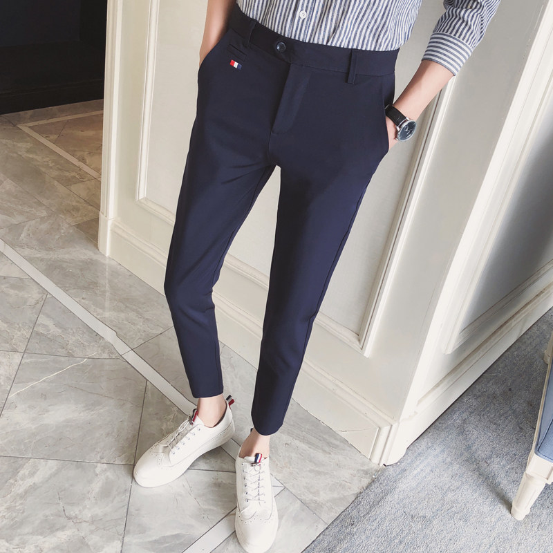 Nine-point pants Men's spring and Autumn youth overalls elastic trousers Men's casual pants Korean version of the trend slim cigarette pipe pants