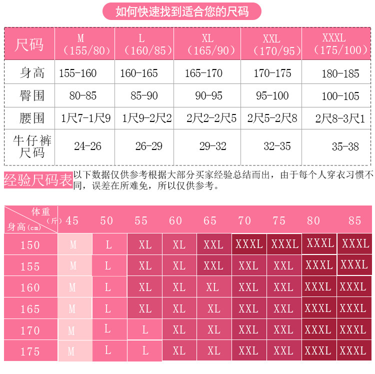 M (155 80)L (160 85)XL (165 90)XXL (170 95)XXL(175)