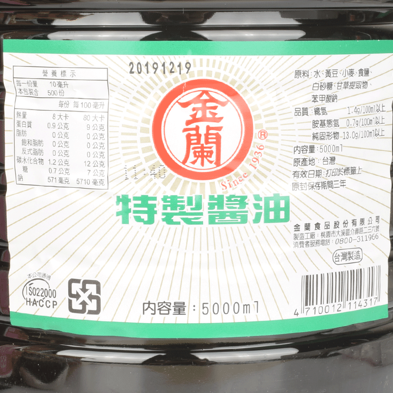 Taiwan Imported Gold Lanky Special Soy Sauce 5l Dining Hall Old Pumping Soy Sauce 5000ml Halogen Meat Rice Red and seasoned
