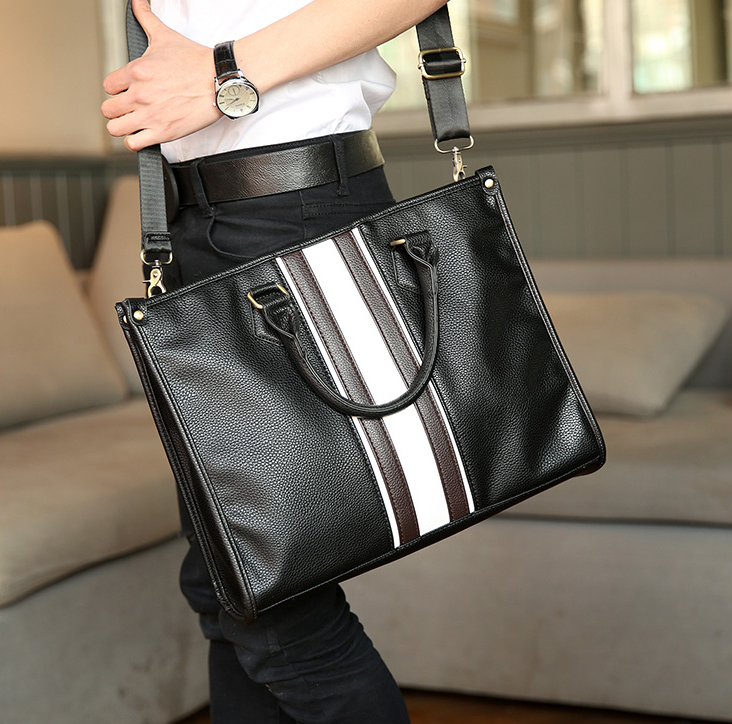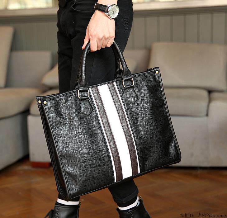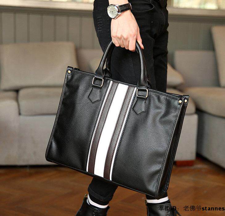 European Station Men's Handbag Fashion Boomer Briefcase Men Business Genuine Leather Brief Casual Personality Hand Carry Bag 100 hitch