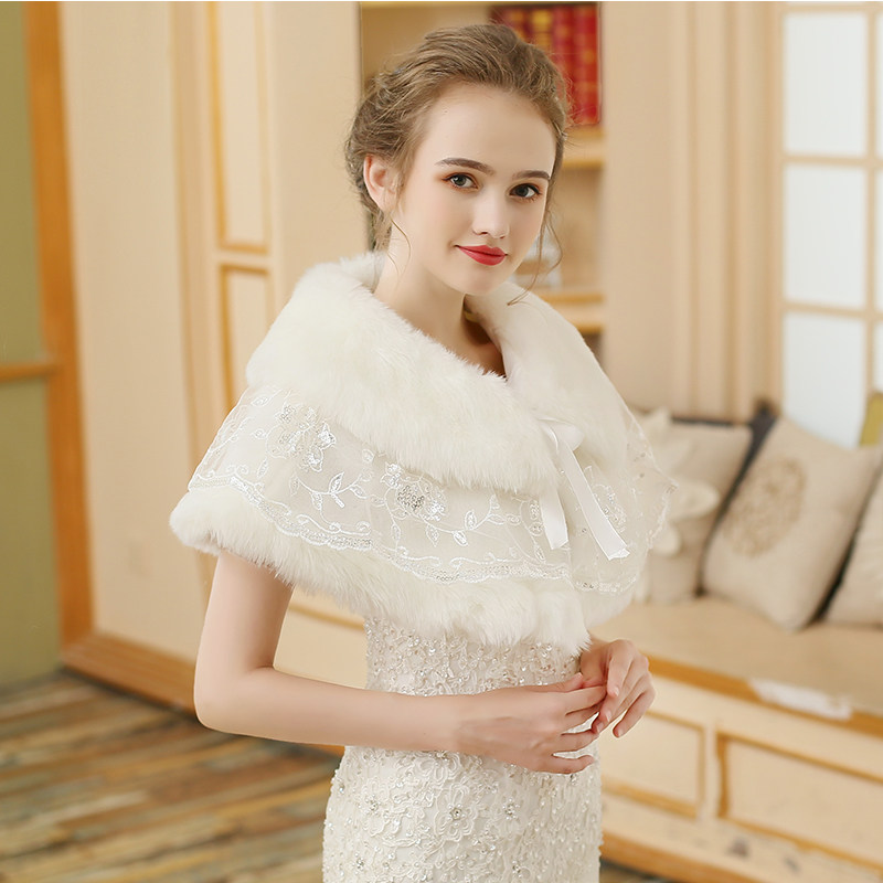 Fur Cape New Bride White Cloak Imitation Rabbit Fur Short Version Wedding Dresses External Hitch Warm And Soft And Elegant Shawl