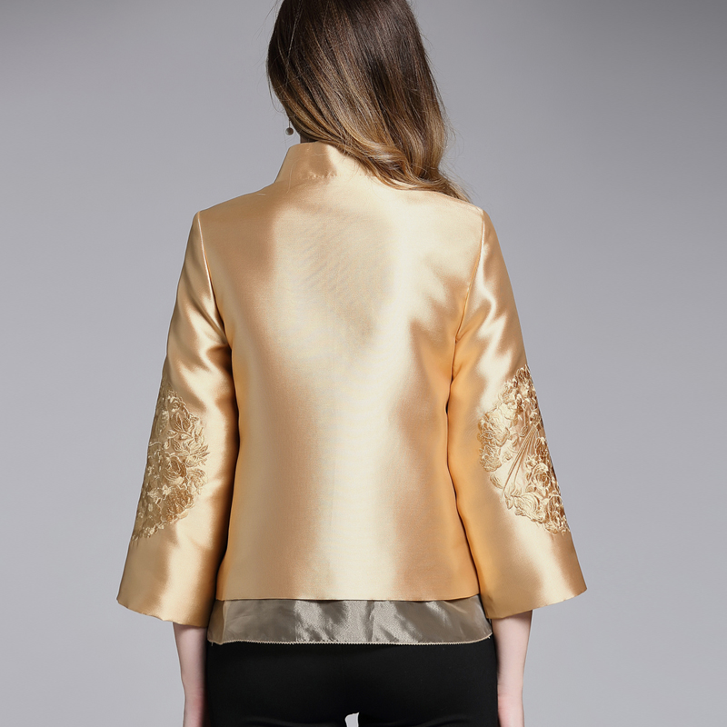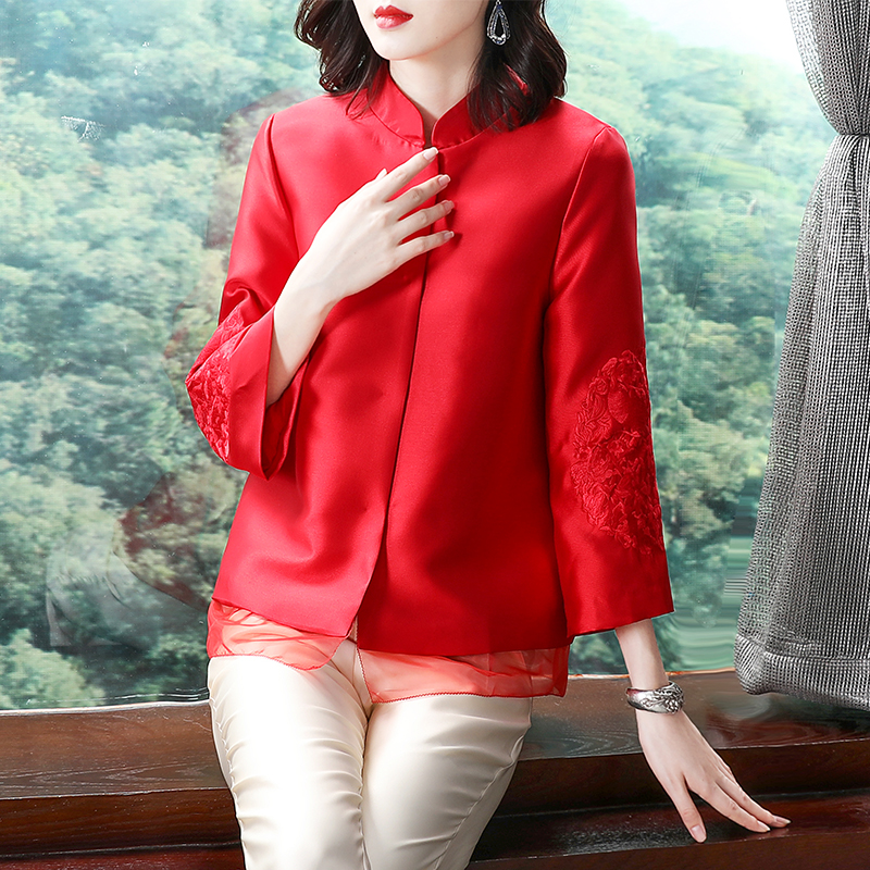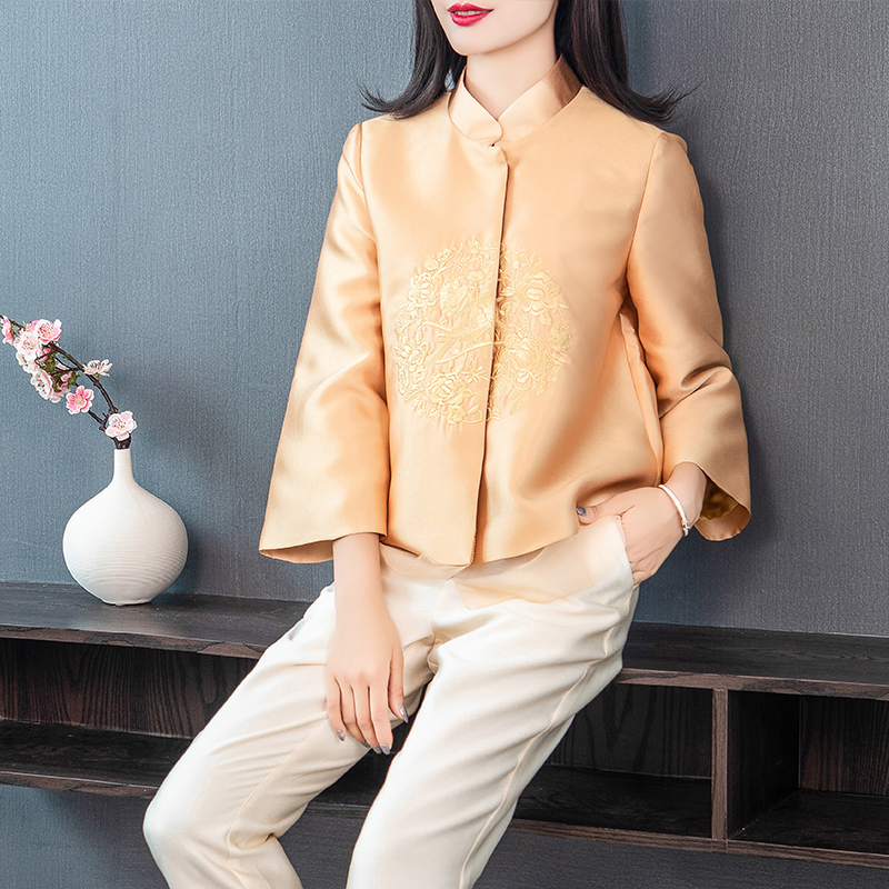 2021 spring and autumn new Chinese style retro embroidered improved cheongsam top Tang suit large size loose stand collar short jacket women