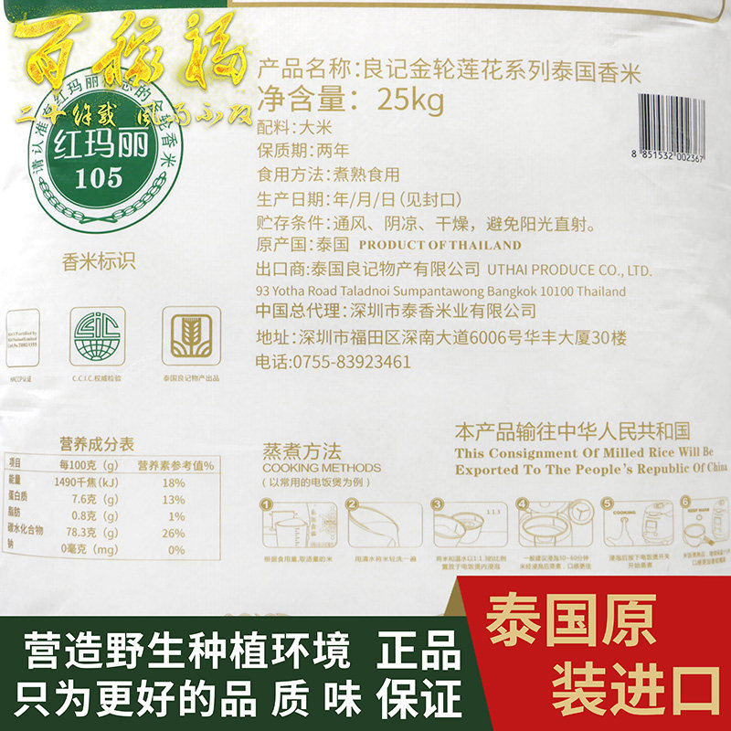 Liangji Golden Wheel Lotus series Thai Jasmine rice 25KG imported 2020 new rice Guangdong
