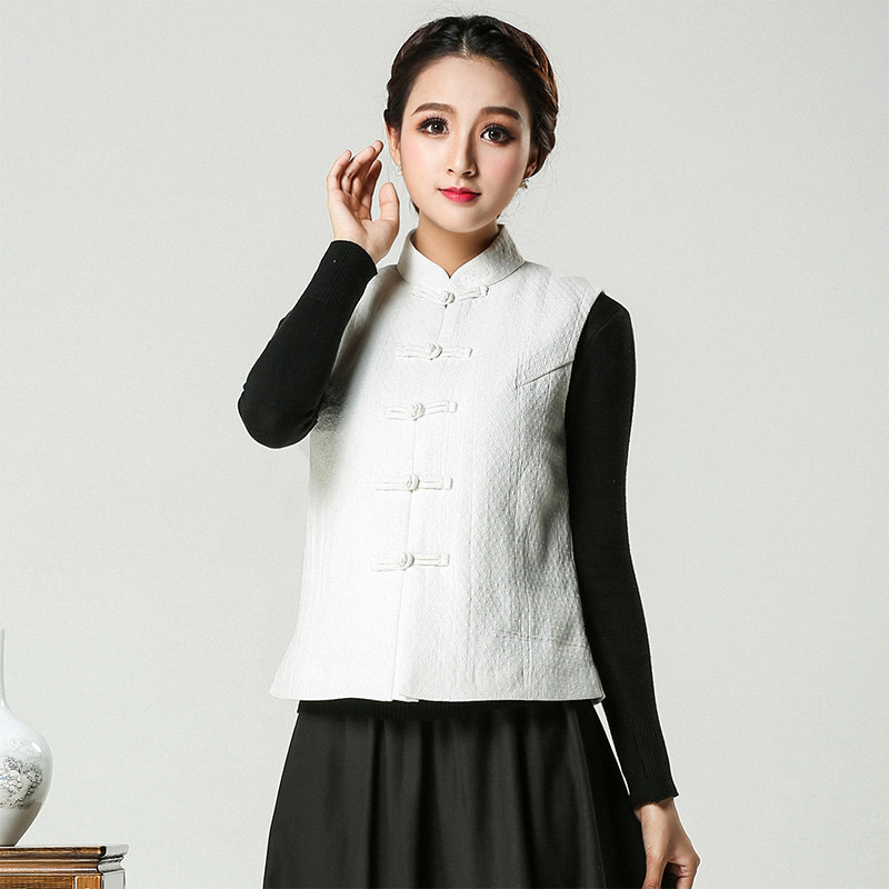 Don dress Chinese women's clothing Qipao Vest small waistcoat Chinese wind autumn and winter plus cotton improved disc buckle blouses tea suit 610