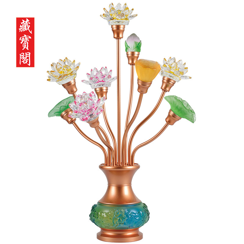 Buddha's former supplies Lotus lamp Buddha for lamp led Seven colorful Buddhas Buddha for the Buddha lamp glazed crystal lotus lamp Changming lamp