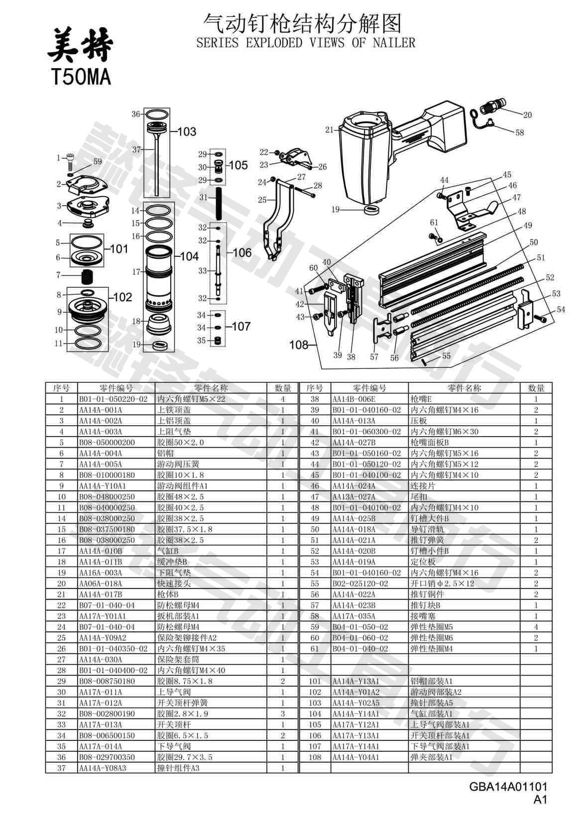Mete T50MA gun mouth E(38#) Mete T50MA gun mouth panel B(42#) Mete T50MA crash (103#) Met T50MA bullet clamp(108)