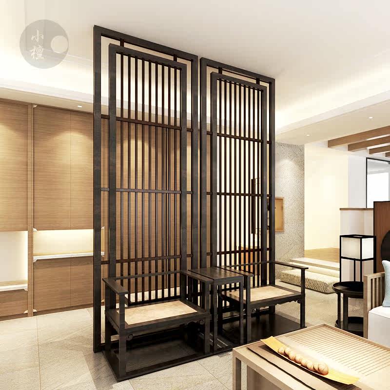 Xiaotanjia living room Solid wood screen living room New Chinese style entrance partition full fence hollow
