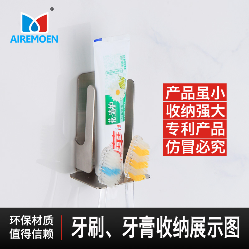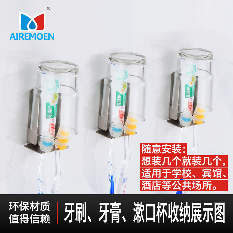 Punch-free 304 stainless steel toothpaste holder toothbrush mouthwash cup three-in-one bathroom wash household supplies rack