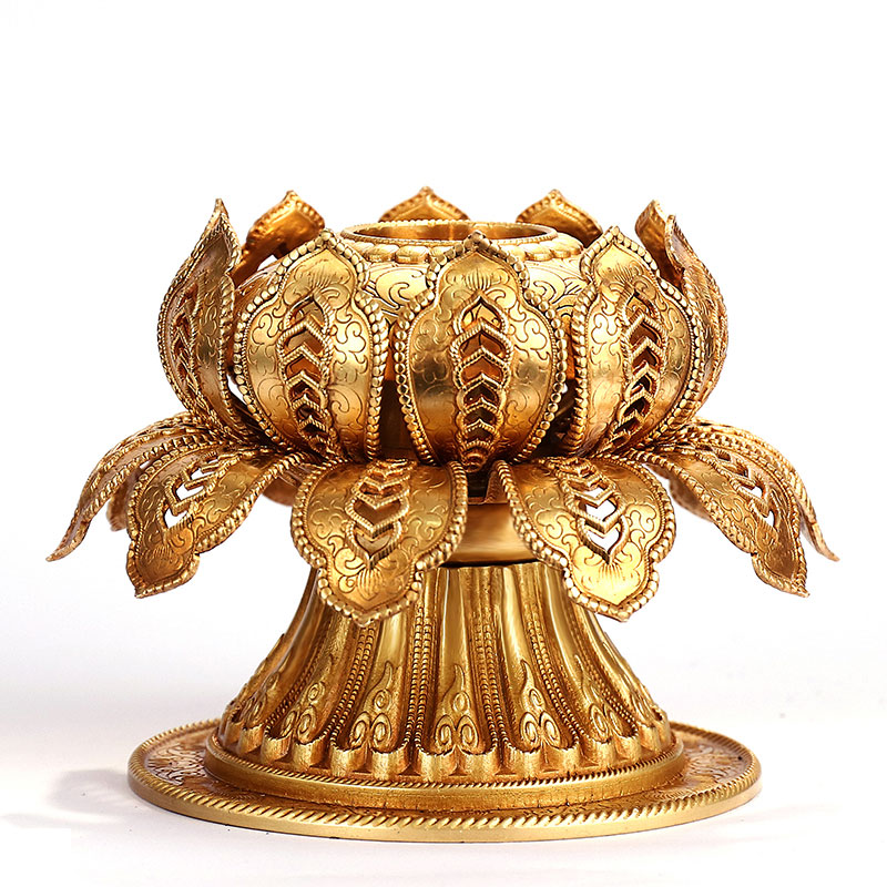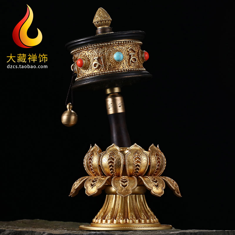 Tibetan Buddhist supplies pure copper tantric ornament Double-layer large large hole Hand cranked prayer wheel base lotus base