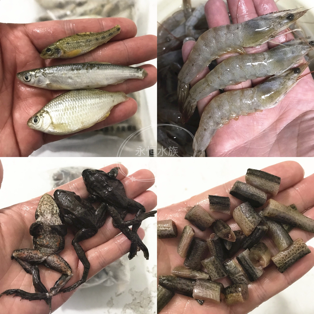Fresh frozen small river shrimp, small loach, wheat ear fish, red dragon feed, stingray tiger fish, frozen loach segment, green shrimp fish food