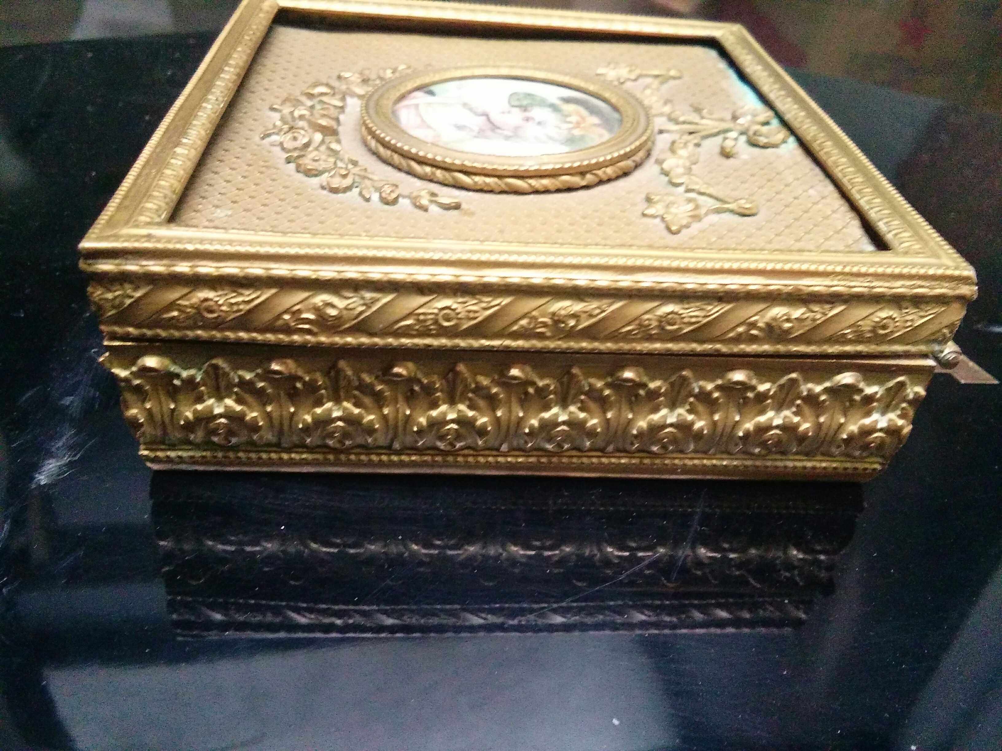 European antique Western antique French Napoleon Empire period oil painting portrait copper gilded jewelry box