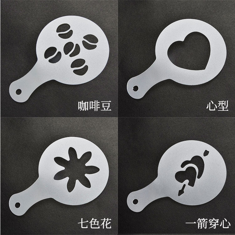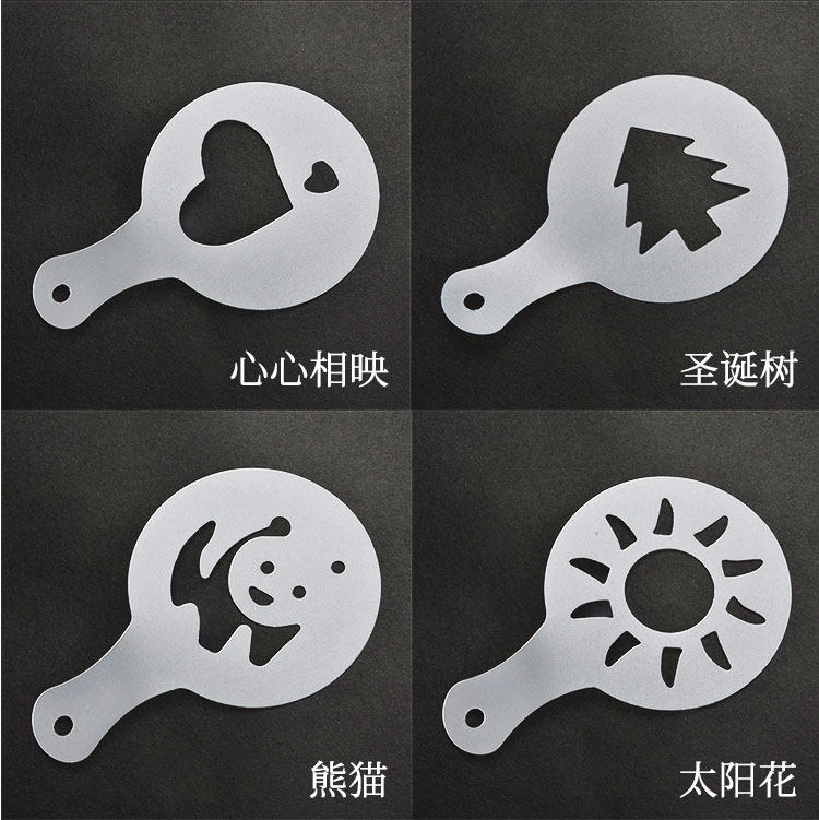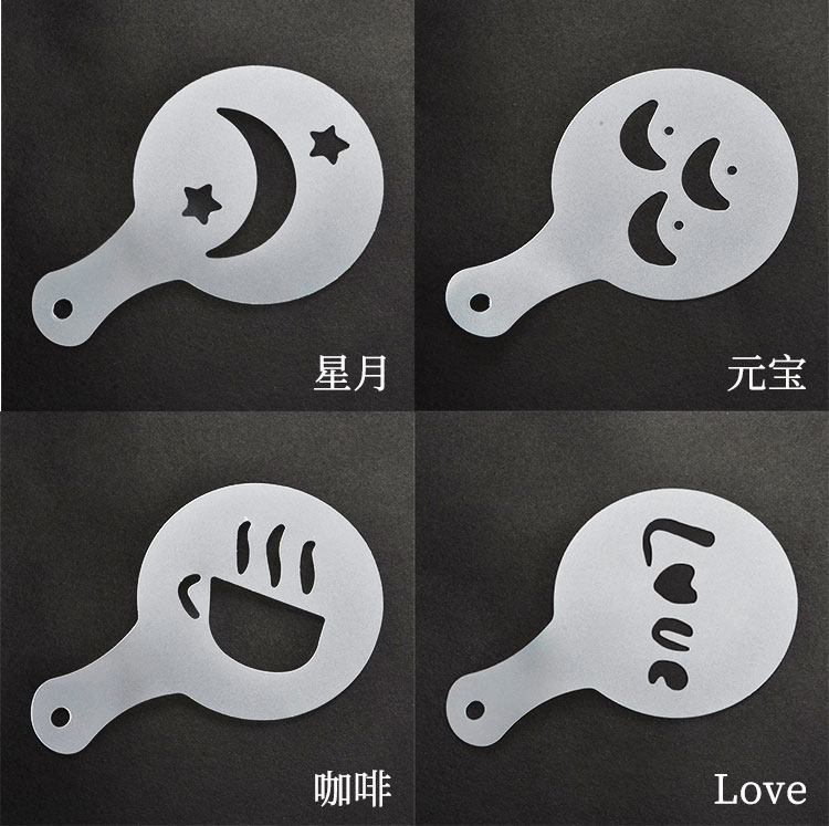 Plastic pull mold fancy coffee printing model thickening coffee milk bubble spray template 16 sets