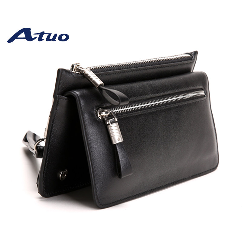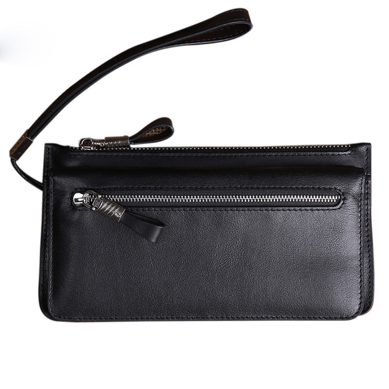 Wallet Men's Leather Long Version Wallet Layer Leather Handbag Double Zipper Trendy Men's Double Layer Design Men's Wallet