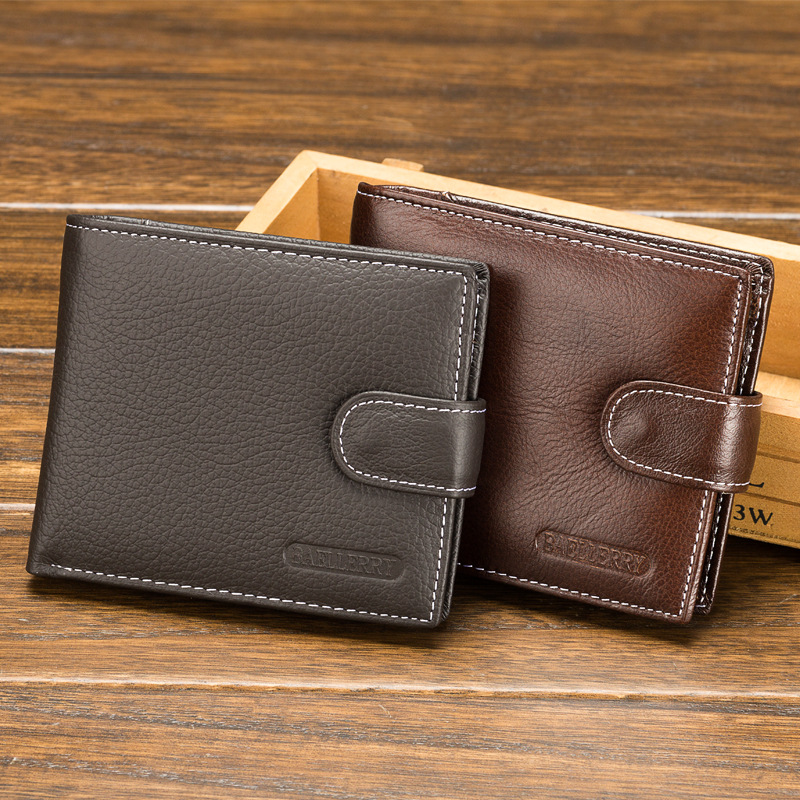 New men's wallet Male Baotou layer Niu leather Short Comeback Zipper Buckle Money Clip Leather Clip Tide Card Bag Packets Bag