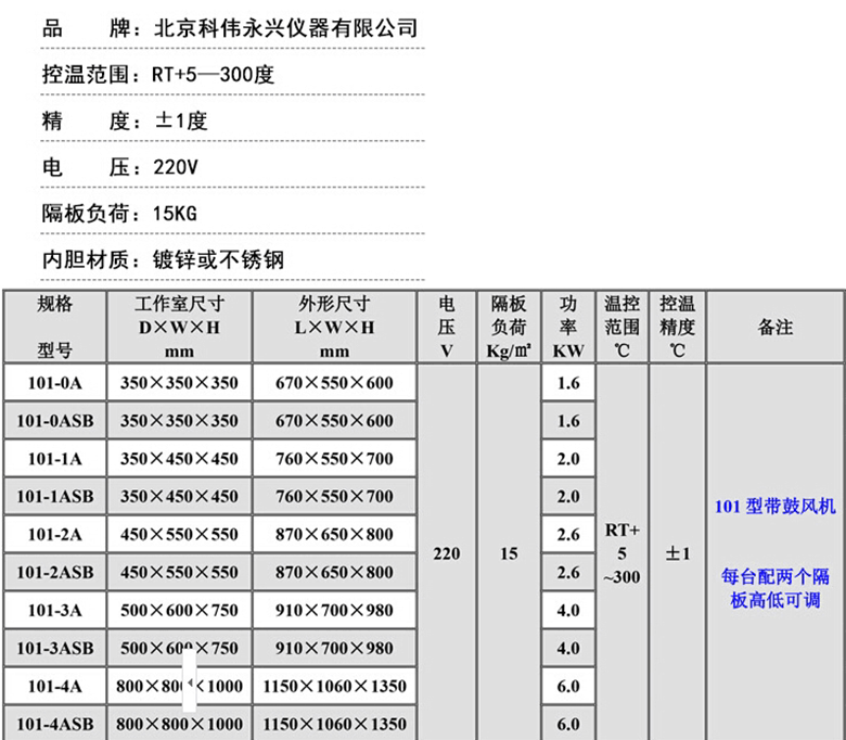 Beijing Kowei Direct Sales Electric Heat Blast Temperature Drying Case 101-1 101-3 Series