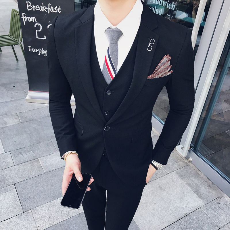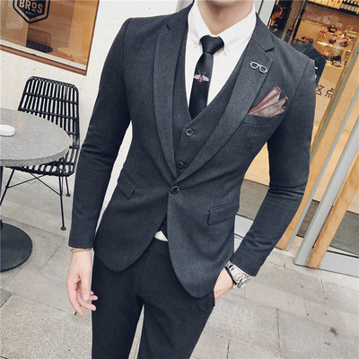 Suit suit men's three-piece suit Korean version slim formal work suit Groom wedding dress Male stretch suit tide