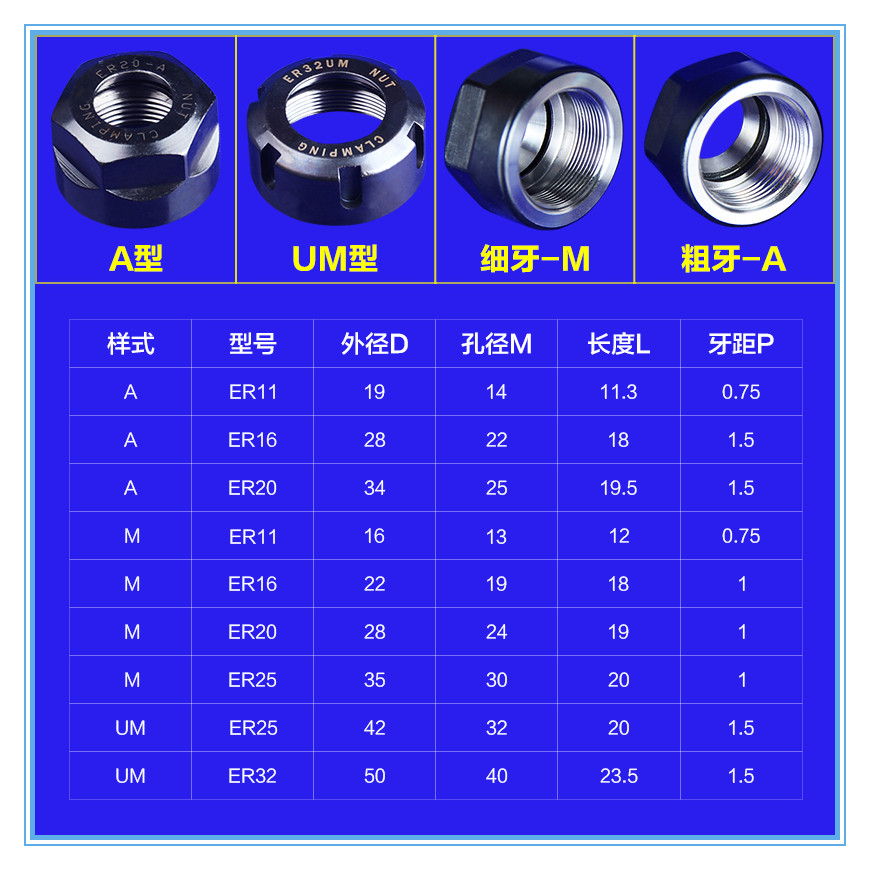 ER20-1MM1 5MM2MM2 5MM3MM3 175MM4MM4 7625MM5MM6MM7MM8MM9MM10M