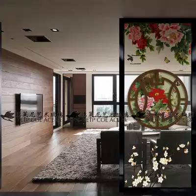 Art glass modern Jane European decorative screen partition entrance porch background wall frosted translucent rich peony figure