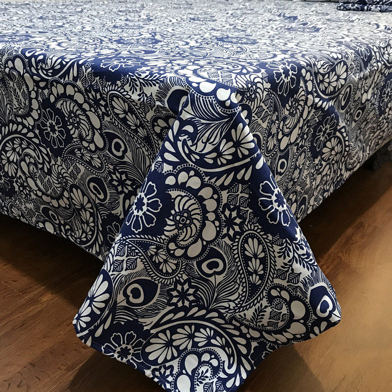 High quality 100 pure cotton sails bunk bed single green flower porcelain cloth China ethnic wind blue flower cloth table cloth curtain fabric