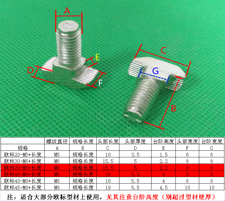 Eurotender Aluminum Milking material accessories Stainless Steel 304T Type Screw T Shaped Hammer Bolt 30 30 40 Type M6M8 * 16205