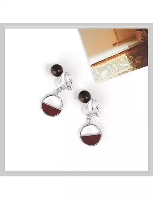 Mousse small d black simple retro circle earrings geometric Korean temperament personality no ear pierced ear clip ear needle female