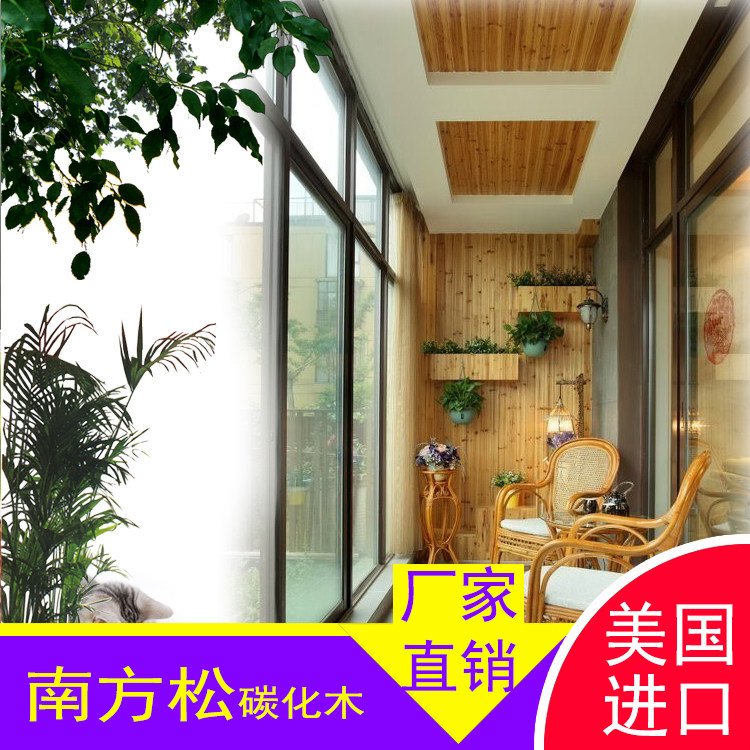 South Pine Carbonated Wood Solid Wood Flooring Outdoor Balcony Overhanging Ceiling Sauna Board Wood Buttoned Plate Wall wall Erosion Wood Cylindrical