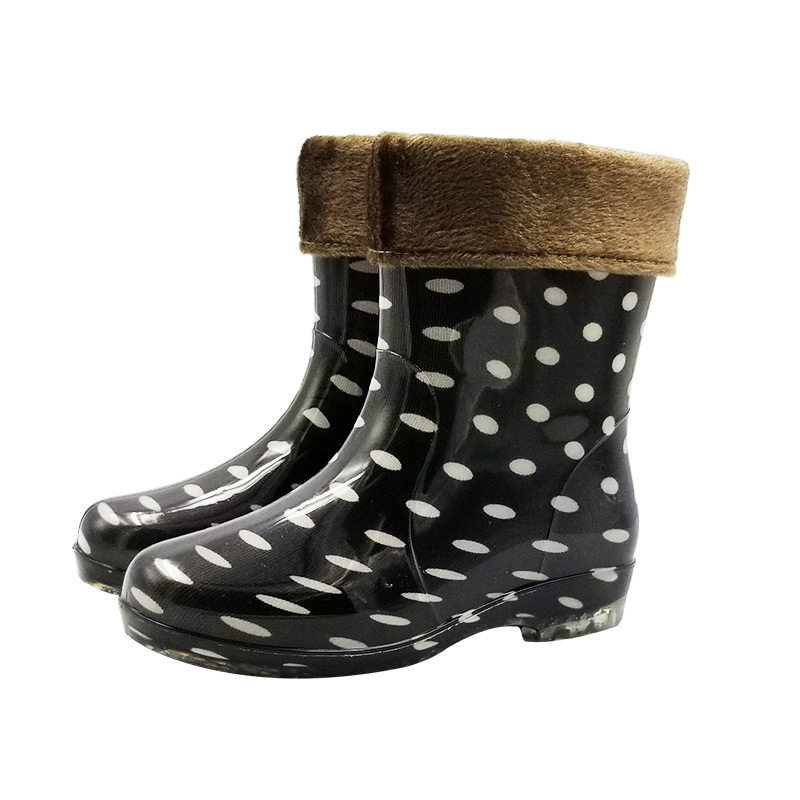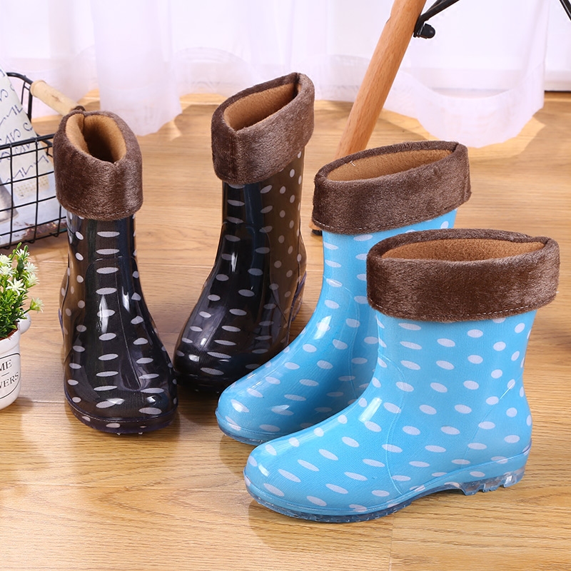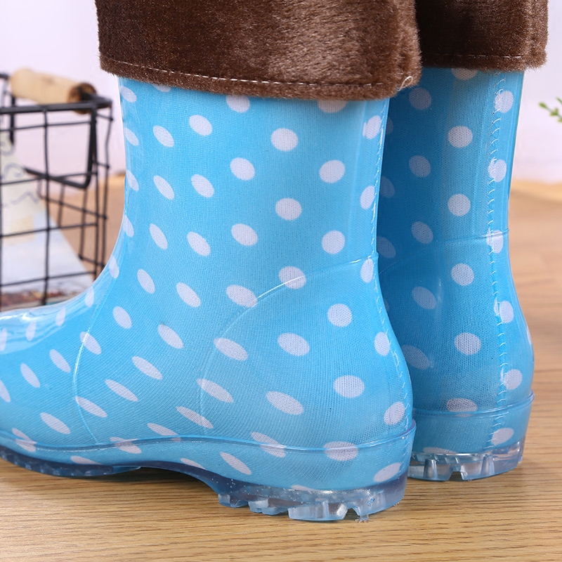 Jelly Rain Shoes Waterproof Shoes Plus Suede Cotton Rain Boots Gel Shoes Water Boots Cover Shoes Women Adults Non-slip Fashion Short Cylinders Warm Winter