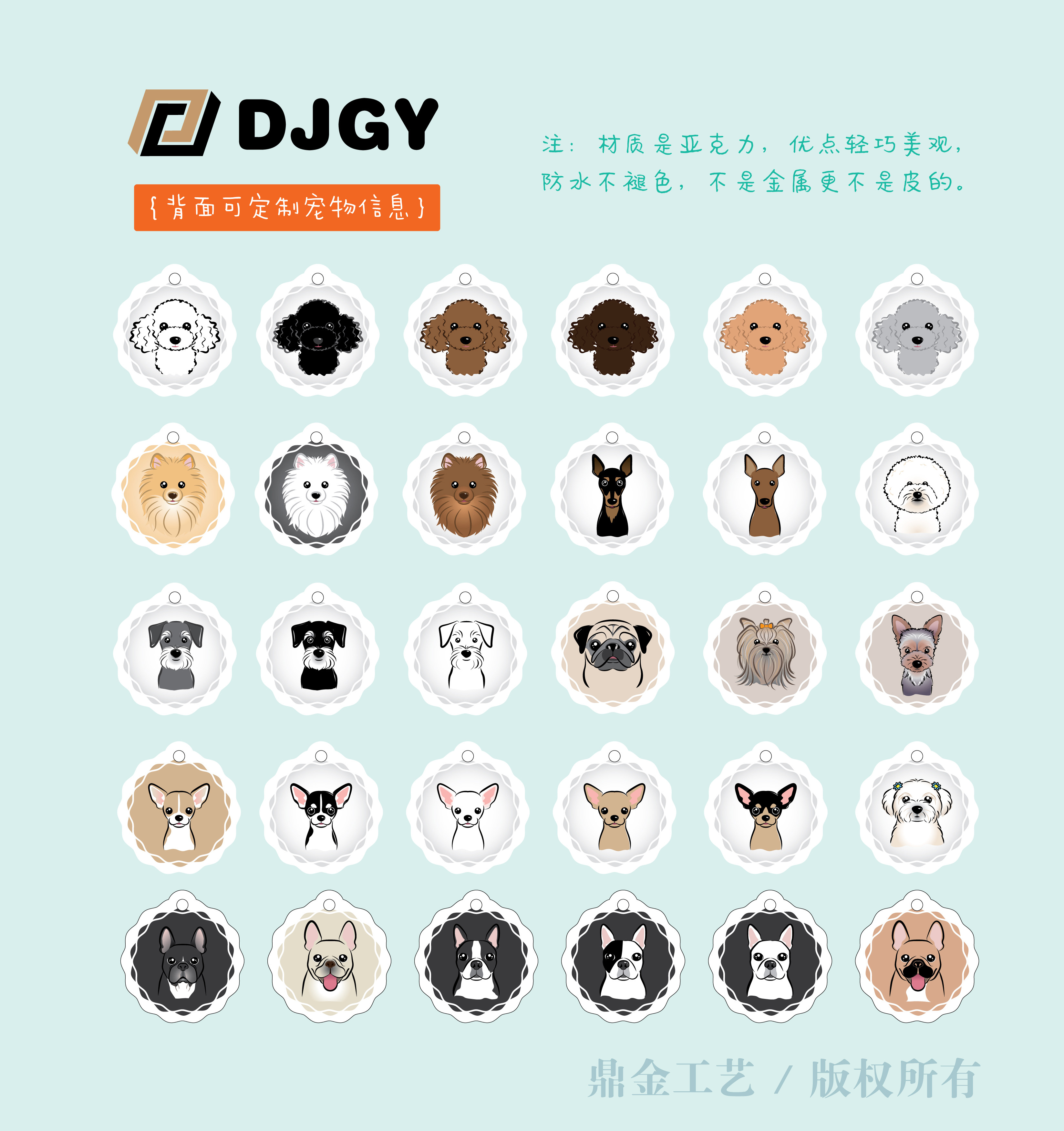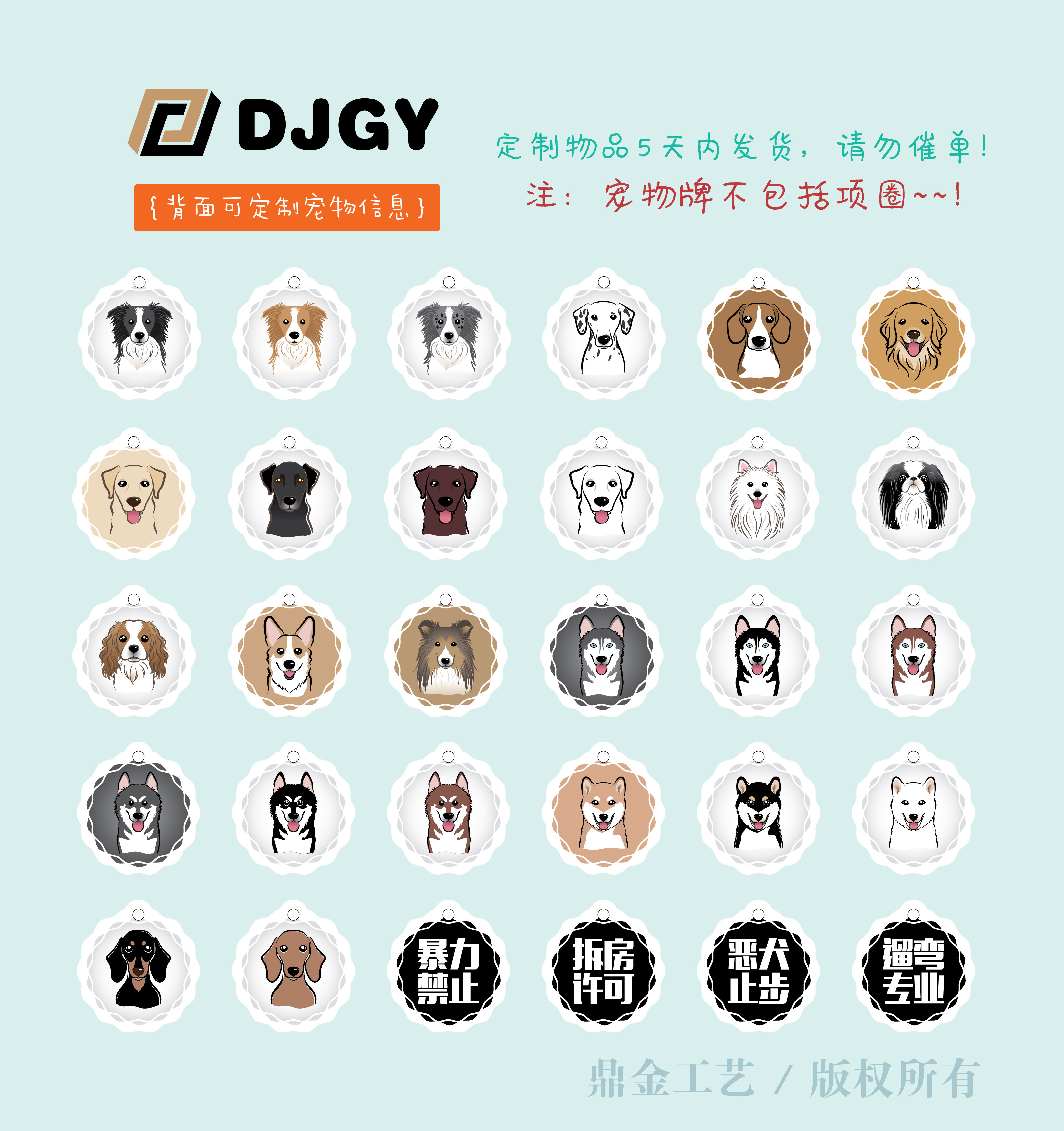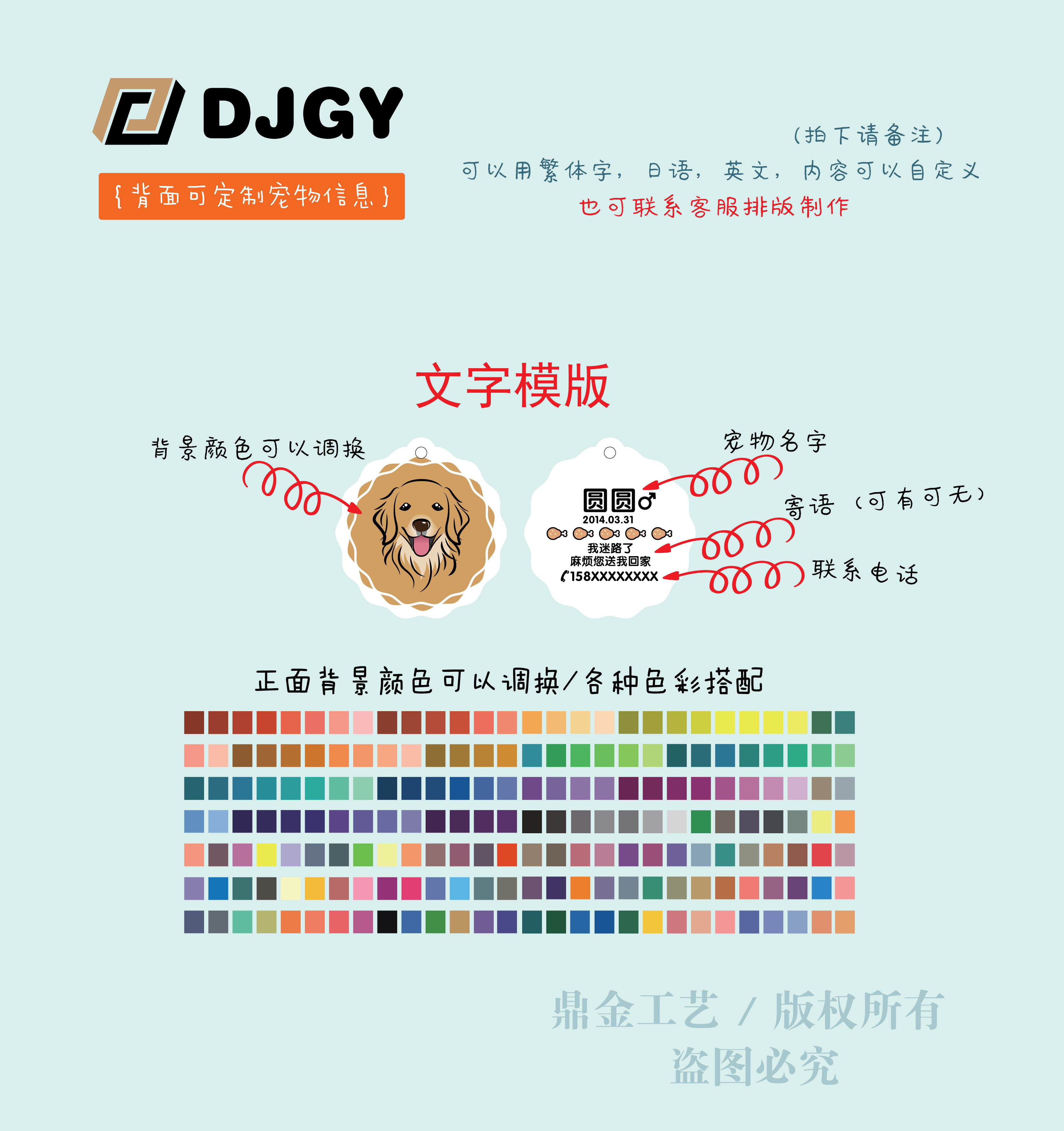 Dingjin round bust dog tag ID card custom lettering pet card Teddy Golden Retriever anti-lost card key card
