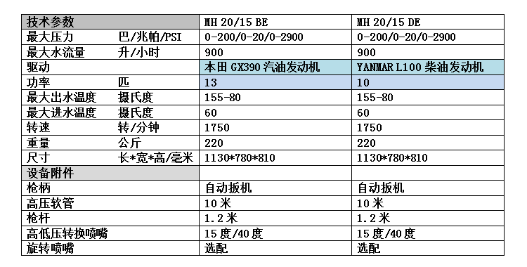 MH20 15BE (petrol driven) hot water machine MH20 15DE (diesel driven) hot water machine