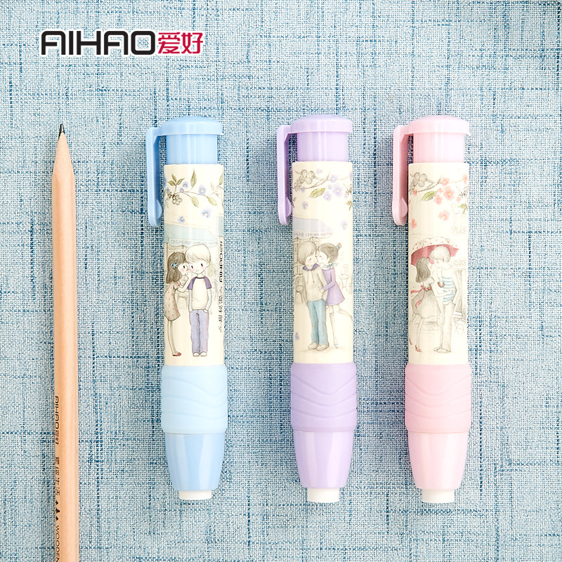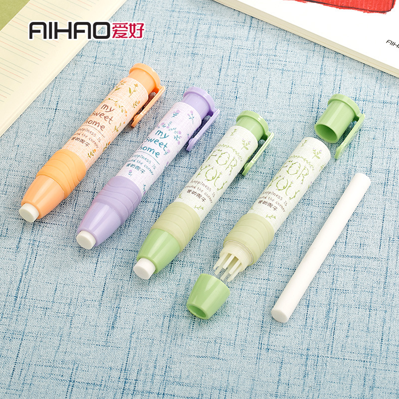 Hobby Press Type Rubber Automatic Pen Type Press Action Erasers Multicolored Elementary School Students Creative Stationery Wholesale