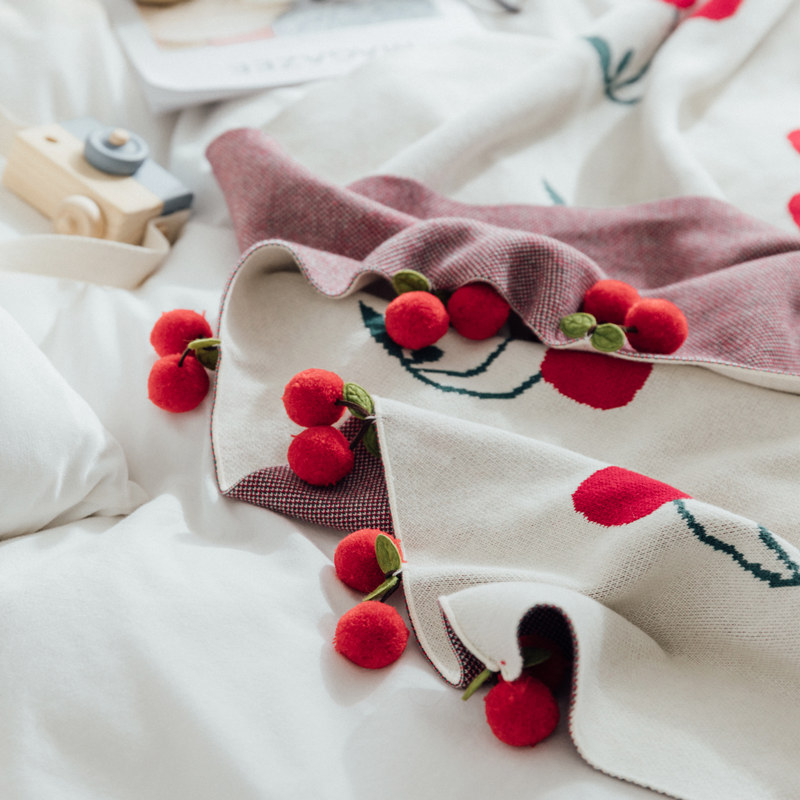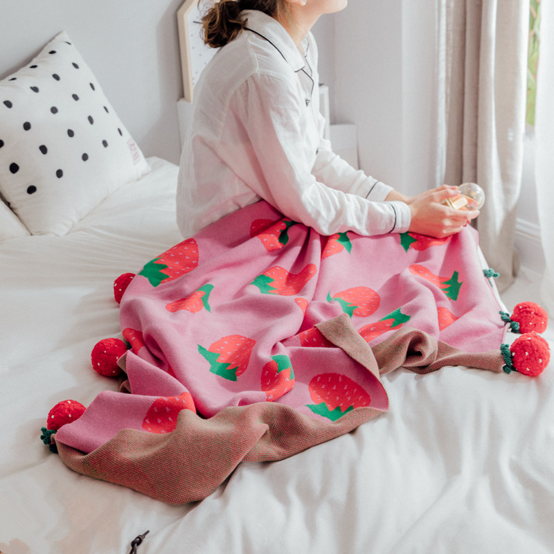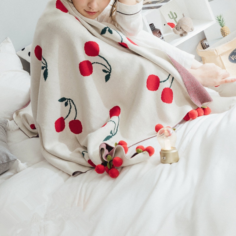 Total Cotton Knit Cotton Thread Blanket Girl Hearts Cherry Strawberry Balls Balls Blanket Afternoon Nap Cover Blanket Shawl Sofa Cover